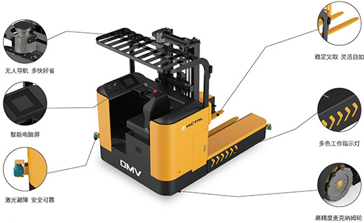 OMV前移式(座駕)叉車是工業車輛一種,配合麥克納姆輪實現零回轉、側移、全方位無死角任意漂移。激光導航、無線遙控能對成件托盤貨物進行準確裝卸、堆垛和中等距離運輸作業。適用于大型自動化倉庫、超市等場所,該車操作靈活,控制精度高,是自動化物流行業搬運、堆垛移動設備。