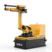 匯聚自動化OMV智能復(fù)合型機(jī)器人采用麥克納姆輪全向移動底盤+重型六軸工業(yè)機(jī)械臂的形式,搭載3D打印頭,通過慣性導(dǎo)航系統(tǒng)和視覺定位系統(tǒng),實(shí)現(xiàn)不同建筑布局的墻體打印.