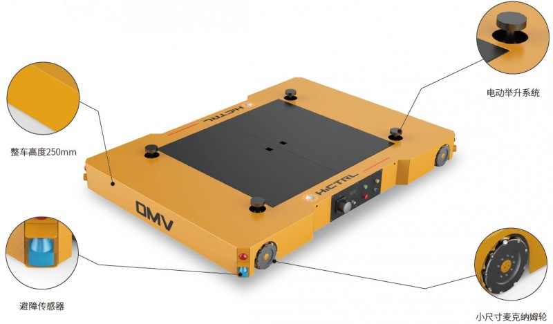 OMV潛伏背負式機器人整車采用低結構設計、高度僅為250mm,利用麥克納姆輪實現(xiàn)零回轉半徑、側移、全方位無死角任意漂移。可方便的潛入各類工件托盤下。穿行于托架之間、在狹小空間內(nèi)全方位無死角任意漂移。通過加裝電動舉升系統(tǒng),即可實現(xiàn)整體搬運各種工裝及部件。實現(xiàn)對接、裝配等復雜工作。