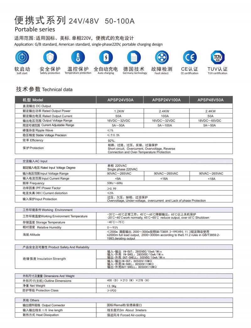觸摸屏智能操作設計:告別傳統按鍵方式,給您帶來更現代更具科技智能的操作體驗 自動充電:插槍自動充電,簡化充電流程,便于操作 兼容性高:80V200A兼容48V200A充電 多重保護: 輸出短路,過流過壓保護,反接保護,電流導管保護等多重保護 預約充電功能:避開高峰用電時段,有效節省成本 雙語切換:中英文雙語隨需切換,跨越語言障礙,與世界接軌 人性化設計:充電機背板內部附部件明細及產品接線圖,方便客戶可更清楚的了解產品,便于維修,提高售后時效 獨特設計: 內置電磁鎖驅動模塊,防止臨時斷電鎖槍 使用壽命更長:功率模塊預留20%空間,提高模塊的使用壽命 出色內部結構: 內部結構左右出風,內部電路不容易積粉塵,提高充電機壽命
