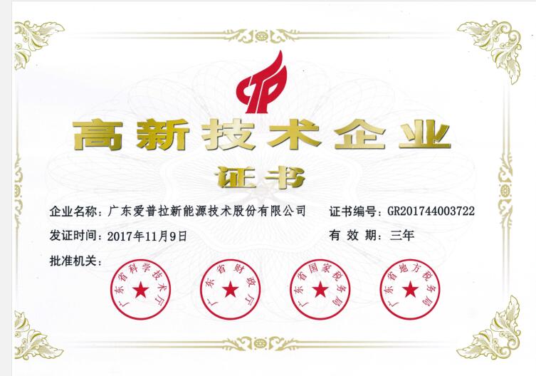 | 發證機構: | 廣東省技術廳/廣東省財政廳/廣東省國家水務廳/廣東省地方稅務廳 | 發證時間 : | 2017-11-09 |