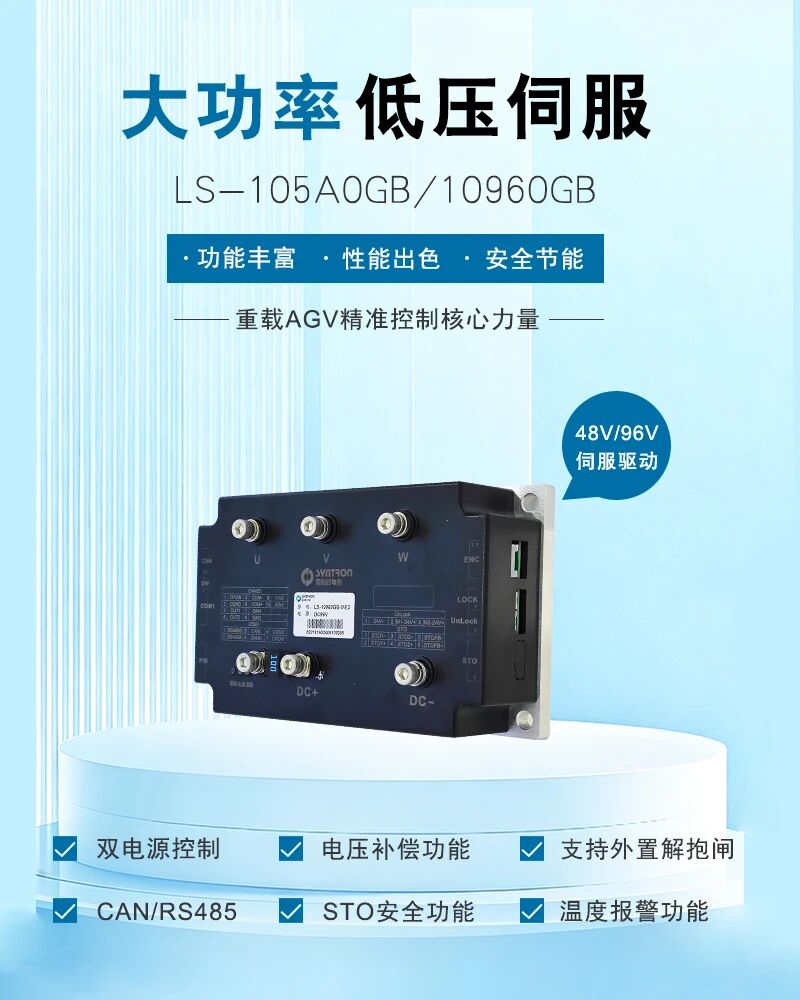 LS-105A0GB\10960GB低壓伺服驅(qū)動器不僅性能出色、功能豐富,其參數(shù)配置也精準(zhǔn)契合重載AGV雙差速舵輪場景的需求。LS-105A0GB額定電壓48V,LS-10960GB額定電壓96V,最大能夠匹配5KW的直流伺服電機(jī),能為重載AGV提供充足動力,輕松應(yīng)對重載貨物的運輸作業(yè)。無論是大型工廠的物料搬運、港口碼頭的集裝箱轉(zhuǎn)運,還是倉儲物流中心的重型貨物調(diào)度,LS-105A0GB\10960GB都能憑借強(qiáng)勁的動力輸出與穩(wěn)定的性能,助力重載 AGV 高效完成作業(yè)任務(wù)。