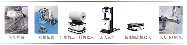 針對(duì)以上痛點(diǎn),藍(lán)芯科技以智能拆包裝置、打橫裝置、上下料機(jī)器人、無人叉車、搬運(yùn)機(jī)器人、分切下料打包自動(dòng)線為主體,結(jié)合智能倉儲(chǔ)設(shè)備、信息化管理系統(tǒng),實(shí)現(xiàn)包裝企業(yè)來料自動(dòng)拆包、物料自主搬運(yùn)、卷料自動(dòng)上/下料、庫位自動(dòng)識(shí)別、成品/半成品/原料自動(dòng)出入庫作業(yè)。