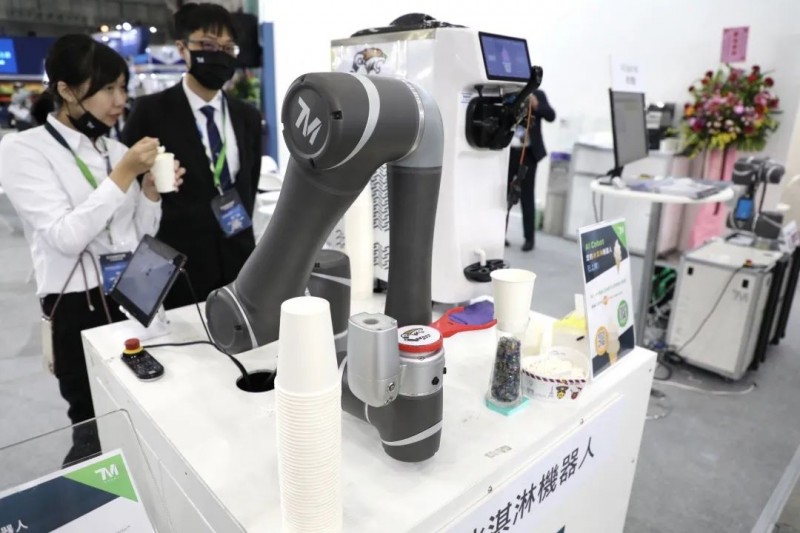 達明機器人的AI Cobot,是具有AI功能的全方位智慧協作機器人,包含達明自行研發AI的智慧視覺解決方案- TM AI+,以及內建智慧視覺系統,涵蓋傳統機器視覺與先進AI視覺能力,能輕易找出難以辨識的瑕疵,解決各產業經常面臨的瑕疵檢測難題。此次展出的半導體晶圓蒸鍍工序的整料應用,是將AI、協作機器人及2D+3D視覺,全面整合為一體,快速協助半導體產業進行晶圓的精密辨識與取放,大幅降低以往需整合多項視覺的時間及費用。目前也運用在日系汽車大廠出廠前的質量控管,以及導入連鎖披薩、炸雞店的產品辨識與控管,從制造業、汽車產業一直到食品產業皆可廣泛運用。