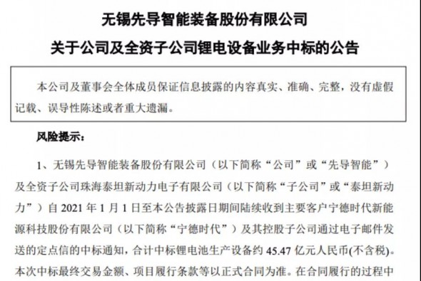 - 本次中標有利于公司及子公司在新能源電池領域的業務拓展,提高公司收入規模及盈利能力。 - 關鍵字標簽: 營收、中標  2021-06-03 2021-06-03