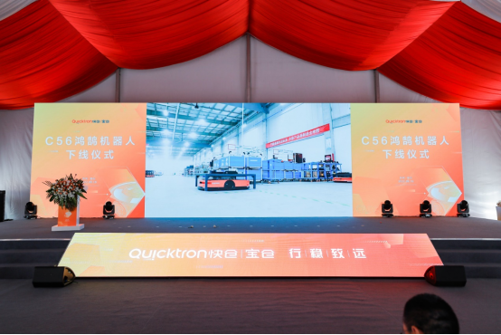 啟動儀式上,快倉新一代“鴻鵠”C56機器人也正式下線,這也標志著快倉在料箱機器人產品上迎來新突破。