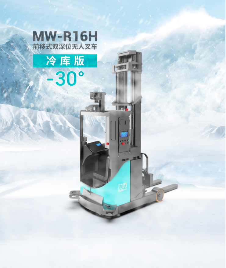 以解決行業痛點為導向,深耕行業,持續創新,勱微機器人推出冷庫版前移式無人叉車MW-R16H,除能解決在冷庫等極端環境復雜場景外在高位貨架作業中,可提升30%以上倉儲庫容率,實現有限空間內的高密度存儲。