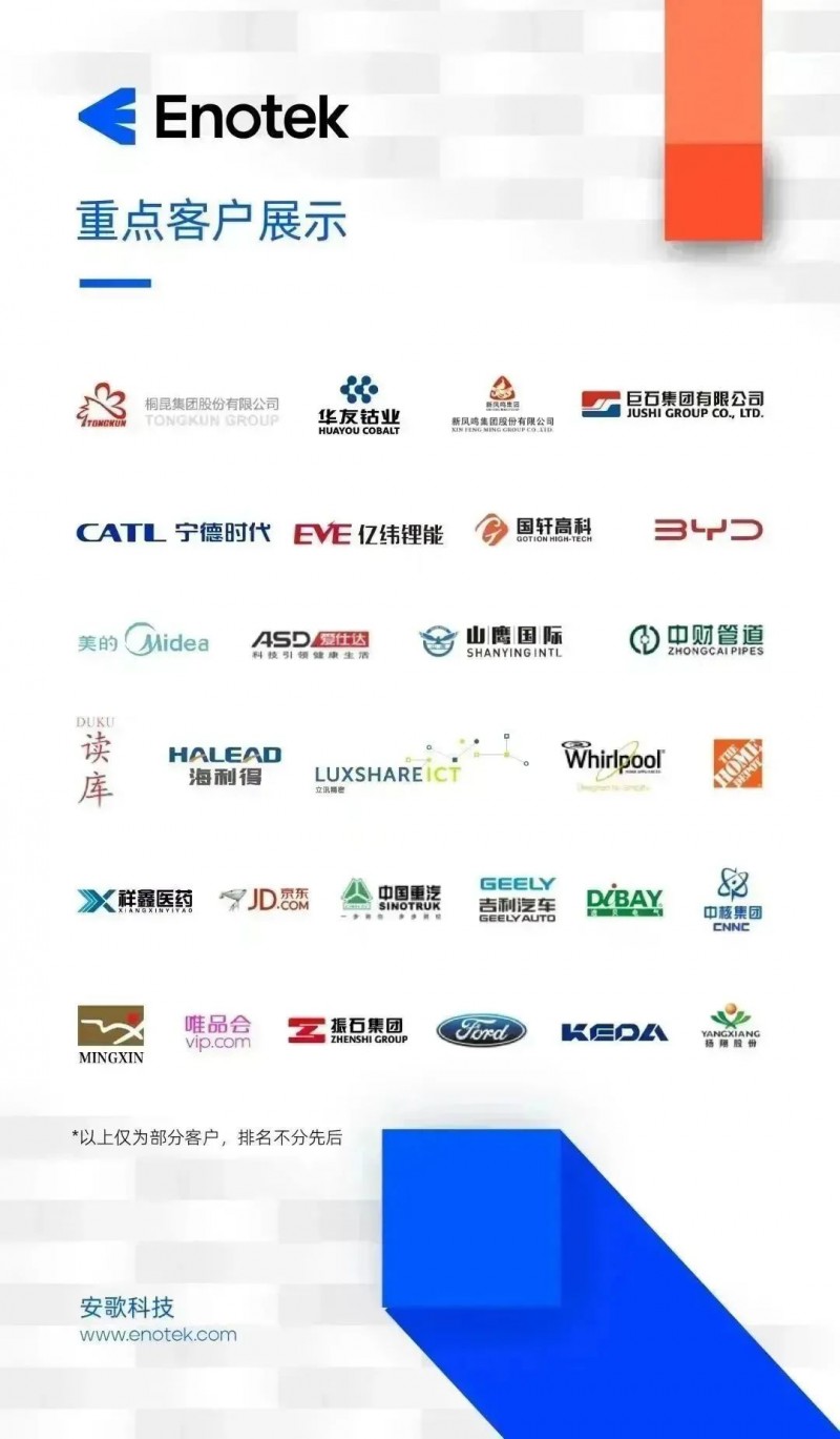 除此之外,安歌科技至今已為桐昆股份、中國巨石、中國重汽、國軒高科、比亞迪等化纖、玻纖、新能源、新材料、汽車零配件、造紙、電子電器、食品飲料等打造了100+案例,收獲了來自各領域頭部企業(yè)的認可。