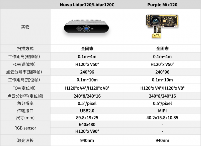 產(chǎn)品將重點針對機器人應(yīng)用領(lǐng)域,有效解決導航、避障功能模塊分離造成的機器人整機產(chǎn)品形態(tài)設(shè)計困難、傳感模塊多而成本高的問題。此外,傳統(tǒng)的LDS、單點/多點dToF線掃導航模塊都需要采用機械式或半固態(tài)的設(shè)計,可靠性易受影響,而Nuwa-Lidar120和PurpleMix120都采用了全固態(tài)的方案,產(chǎn)品內(nèi)部沒有任何的機械振動和微機械振動,是針對產(chǎn)品可靠性和壽命優(yōu)化最理想的方案之一。