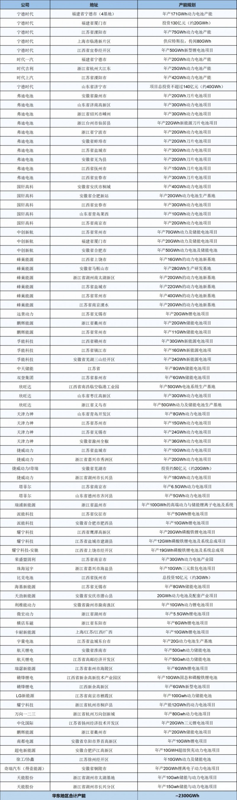 以下將按照區域劃分,將國內動力與儲能電池的產能規劃統計如下(不完全統計):