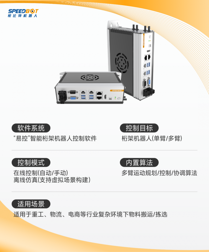 針對以上亟待解決的難點,視比特機器人推出了國內(nèi)首款多臂智能桁架機器人控制器——SpeedTruss,以最優(yōu)運動規(guī)劃突破傳統(tǒng)桁架自由度限制,實現(xiàn)了多臂共軸桁架機器人在復(fù)雜環(huán)境、復(fù)雜任務(wù)下的自動規(guī)劃、主動避障、敏捷執(zhí)行,適應(yīng)全場景柔性生產(chǎn)需求;同時支持低代碼靈活開發(fā),極大地簡化了開發(fā)流程,大幅縮短了投產(chǎn)周期,為工廠智能化水平和生產(chǎn)效率的提升帶來質(zhì)的飛躍。