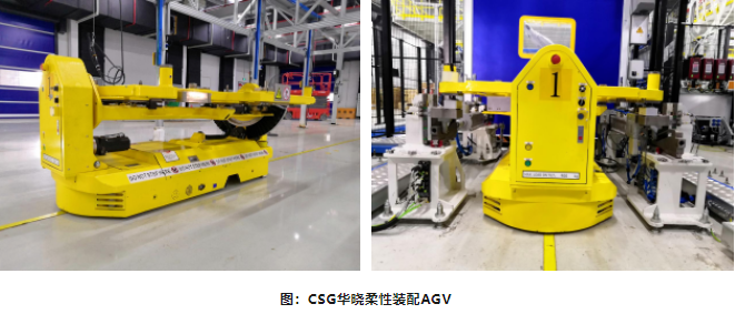 該項(xiàng)目采用先進(jìn)的柔性化裝配理念,可實(shí)現(xiàn)零件集配、上件、分裝、下件全流程,真正做到零件運(yùn)輸流、產(chǎn)品裝配流、成品下線流“三流合一”。CSG華曉結(jié)合動力電池PACK的工藝要求,設(shè)計(jì)建造了集零件集配、物料配送、動、靜態(tài)測試、成品下線于一體的柔性化裝配線,并且依據(jù)人體工程學(xué)首創(chuàng)翻轉(zhuǎn)式AGV,該型AGV可根據(jù)不同工位的不同工藝需求,自動翻轉(zhuǎn)工件,節(jié)省裝配人員5名,提高了15%的運(yùn)轉(zhuǎn)效率。