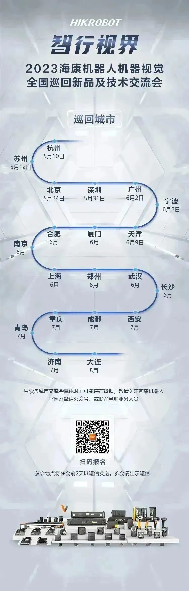 5月10日,時入立夏,萬物繁盛伊始,智行視界——2023海康機器人機器視覺全國巡回交流會首站在杭州拉開序幕,熾熱的智造生態圖景由此展開。交流會全面解析并展示了機器視覺新技術、新產品和新思路,來自不同行業的近500位客戶及合作伙伴出席活動。海康機器人期待與各位共建開放兼容、賦能智造的新生態。