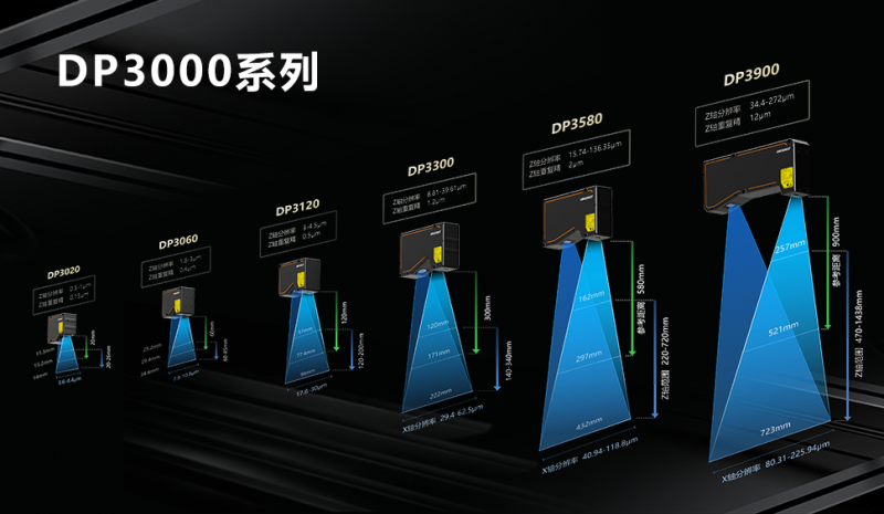 DP3000系列推出六款型號,輪廓點數(shù)升級為3200點,最高檢測頻率提升到19KHz,在超高精度測量方向,進(jìn)一步擴(kuò)充了DP3020型號,覆蓋11.5-14mm的X軸寬度,實現(xiàn)0.15um的Z軸重復(fù)精度,同時DP3300和DP3580兩個版本同樣支持紅藍(lán)光兩個版本選配。