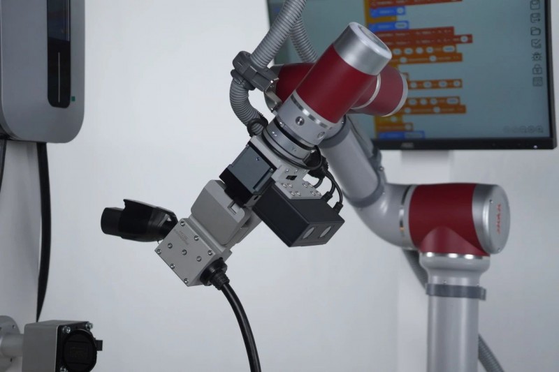 除了在生產環節追求智能化作業,新能源產業也十分注重用戶體驗。例如,各大新能源車企業紛紛發力便捷充電“最后一公里”,新能源車充電設施向著自動化、網絡化、智能化不斷發展。在智能充電的最后一環,節卡機器人創新開發了新能源車自動充電應用,用戶任意角度停車,節卡機器人與3D相機也能“手眼”配合準確識別規劃路徑,自動完成電動汽車插拔充電過程,助力企業構建高質量運營服務,為終端用戶提供智能化車輛充電體驗。