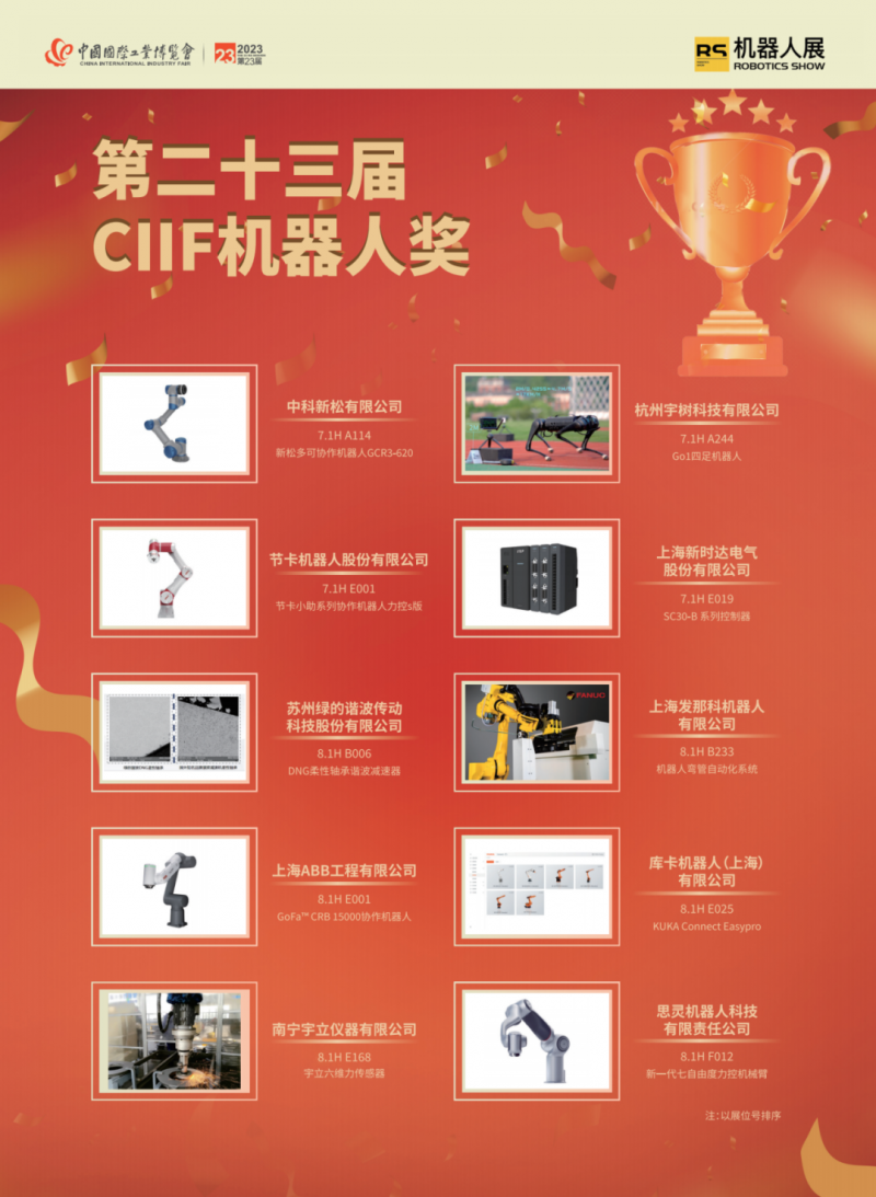 今年中國(guó)工博會(huì)機(jī)器人展圍繞“讓智造更智慧”主題,以56000平米超大展示規(guī)模迎接350+家中外知名品牌(除了中國(guó)本土品牌,還有德國(guó)、美國(guó)、日本、瑞士、瑞典、斯洛伐克、英國(guó)、奧地利、丹麥等)同臺(tái)競(jìng)技,包含了十余家世界500強(qiáng)企業(yè),二十余家獨(dú)角獸企業(yè),三十余家中國(guó)500強(qiáng)企業(yè),專精特新企業(yè)、專精特新小巨人企業(yè)、行業(yè)標(biāo)桿和制造業(yè)單項(xiàng)冠軍企業(yè)合計(jì)百余家,是一場(chǎng)高規(guī)格、高質(zhì)量、國(guó)際化的合作交流頂級(jí)盛會(huì)。機(jī)器人圈的“神仙打架”名場(chǎng)面即將再度上演!