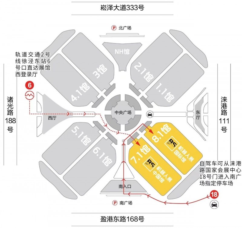 2.如果您自駕車可從國(guó)家會(huì)展中心18號(hào)口(淶港路段),進(jìn)入南廣場(chǎng)指定停車場(chǎng)。從南登錄廳即可到達(dá)7.1H&8.1H。