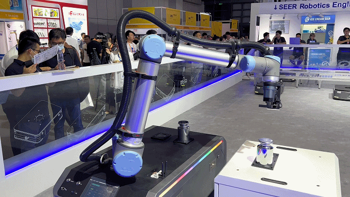 在機(jī)械臂和底盤協(xié)同操作層面,仙工智能控制系統(tǒng)依舊出色,即使機(jī)械臂以最大速度運(yùn)行,底盤仍能夠保持高度穩(wěn)定。
