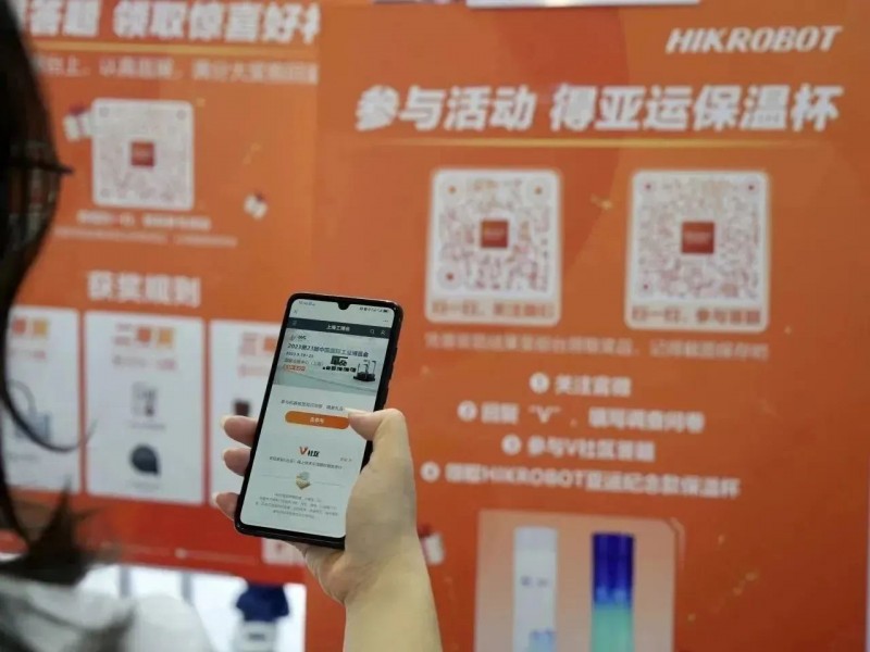 如果您還沒(méi)有盡興,那現(xiàn)場(chǎng)活動(dòng)一定可以讓您滿(mǎn)載而歸,海康機(jī)器人V社區(qū)是專(zhuān)為機(jī)器視覺(jué)開(kāi)發(fā)者和技術(shù)愛(ài)好者打造的分享交流平臺(tái),匯聚了上萬(wàn)個(gè)機(jī)器視覺(jué)從業(yè)者,致力于幫助大家快速入門(mén)機(jī)器視覺(jué)行業(yè),共建機(jī)器視覺(jué)生態(tài)。大家可以現(xiàn)場(chǎng)掃碼注冊(cè)V社區(qū)并參與展品相關(guān)的知識(shí)問(wèn)答,贏取豐厚大禮,可不要錯(cuò)過(guò)呦!現(xiàn)場(chǎng)除了掃碼答題互動(dòng),參與問(wèn)卷填寫(xiě)就能帶走亞運(yùn)會(huì)專(zhuān)屬紀(jì)念保溫杯,禮品有限先到先得!