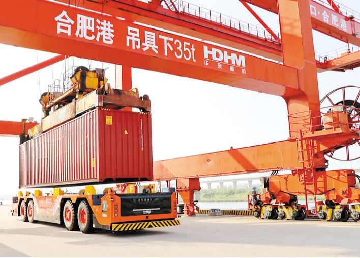 其中,合肥港綜合碼頭是南淝河港區(qū)最大的件雜貨和集裝箱裝卸碼頭,也是合肥港智能化水平最高的碼頭。配備3臺岸橋全部加裝自動對位系統(tǒng),6臺場橋全部改造為全自動場橋,同時配備了2臺國唐“鴻擎F01”IGV無人駕駛集卡車。2022年,合肥港綜合碼頭集裝箱吞吐量達(dá)42萬標(biāo)箱,2023年計劃吞吐量達(dá)45萬標(biāo)箱。