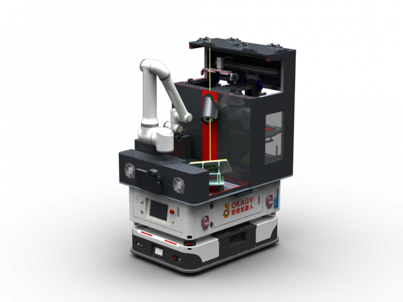 3. 精準。CNC上料要求精度整±0.5mm,需要通過機械臂攜帶的視覺進行糾偏,確保精度達到要求。同時對AGV車輛的定位精度和角度也提出了極高的要求,采用反射板進行二次,歐鎧機器人最終使得AGV穩定達到了±5mm的精度。