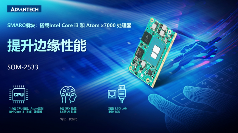 研華SMARC 模塊 SOM-2533,搭載 Intel Core i3 和Atom x7000 系列