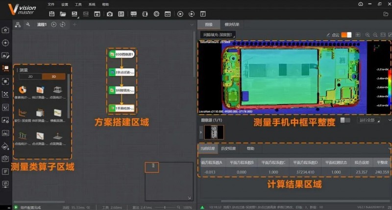 可實現平整度、段差、間隙、體積、夾角計算等功能。