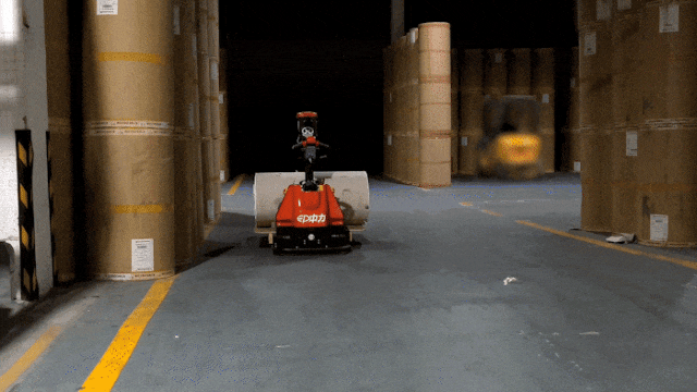 大型圓柱體重紙卷需頻繁從倉庫搬運至產線,且配送距離長。