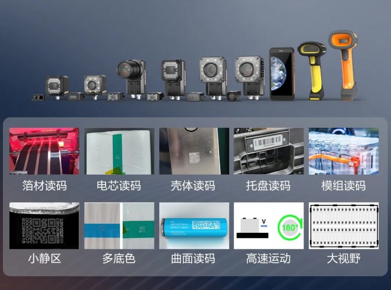 追溯鋰電生產(chǎn)過程是數(shù)智化解決方案的重要一環(huán),海康機(jī)器人由此推出了豐富的智能讀碼產(chǎn)品輕松應(yīng)對多底色讀碼、圓柱電池曲面讀碼、高速運(yùn)動(dòng)讀碼、大視野讀碼等復(fù)雜場景。