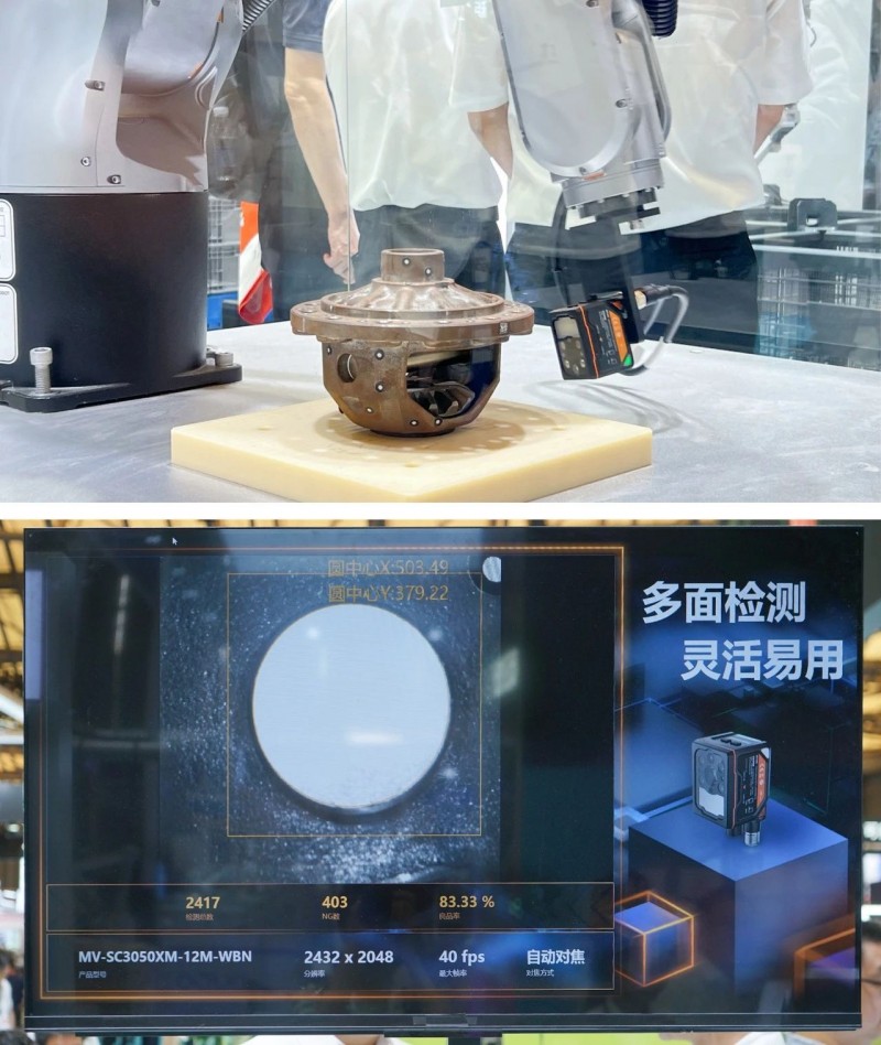 集成像、算法、存儲、通信于一身的SC3000X系列視覺傳感器,體積小巧,外觀緊湊,安裝更加靈活,內(nèi)部嵌入了讀碼、有無、正反、測量、識別和計(jì)數(shù)等防錯檢測算法,搭配機(jī)械臂對鑄造件的各個面進(jìn)行碼信息、字符信息的檢測。