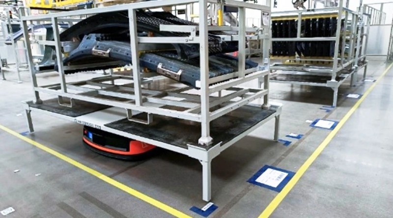 同時(shí),由AMR完成零件貨架轉(zhuǎn)運(yùn)工作,通過(guò)智能調(diào)度系統(tǒng)的柔性調(diào)度,實(shí)現(xiàn)零件貨架自動(dòng)下線及上線補(bǔ)充,攻克了沖壓線尾“缺陷檢測(cè)+自動(dòng)裝箱+智慧物流”一體化的行業(yè)難題,打通了沖壓線尾自動(dòng)化、智能化的“最后一百米”。