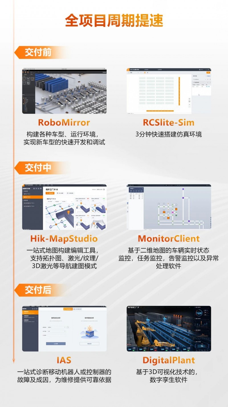 海康機(jī)器人為行業(yè)用戶提供端到端的解決方案和交付服務(wù),在項(xiàng)目組織、項(xiàng)目過(guò)程管理、現(xiàn)場(chǎng)管理、風(fēng)險(xiǎn)管控等方面都已經(jīng)構(gòu)建成熟支撐體系。
