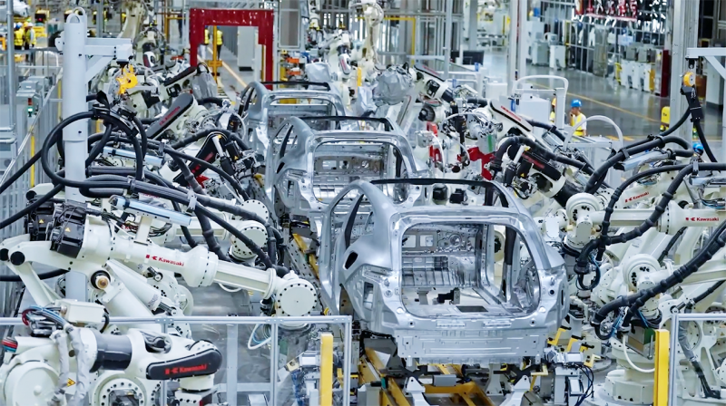 能化程度最高、工藝設備最先進的汽車智造基地每60秒就能下線一輛汽車未來將成為一座關鍵部位100%無人化操作的“黑燈工廠”。
