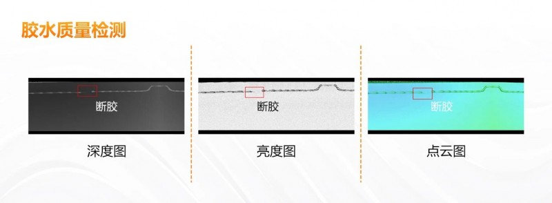 在顯示屏組裝環(huán)節(jié),需要將液晶顯示面板與背光模組等進行組合,通過3D視覺,能夠?qū)δz水的位置度、寬度、高度、體積、缺陷等進行檢測,有效保障密封性。