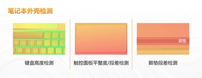 塑料殼體的筆記本外殼,通常通過注塑工藝加工而成,金屬外殼(如鋁合金)通常使用數(shù)控機床進行精密加工。加工完成后的殼體、鍵盤等組件,通過3D視覺進行精準檢測,能夠有效確保其平整度和質(zhì)量的一致性。