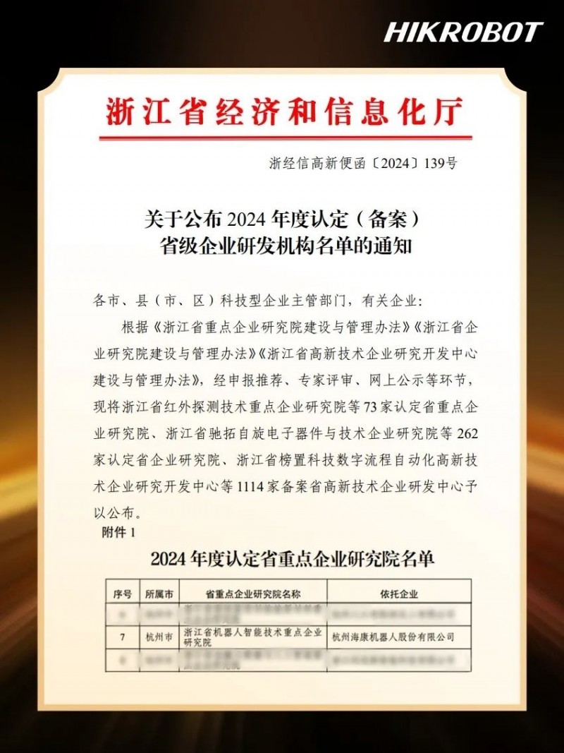 一路高歌,屢創(chuàng)佳績!近年來,海康機器人在科技創(chuàng)新領(lǐng)域的卓越表現(xiàn)得到廣泛認(rèn)可,2024年榮膺“國家重點軟件企業(yè)”、“全省工業(yè)大數(shù)據(jù)與機器人智能系統(tǒng)重點實驗室”、“2024浙江省科學(xué)技術(shù)進步三等獎”等眾多榮譽獎項。
