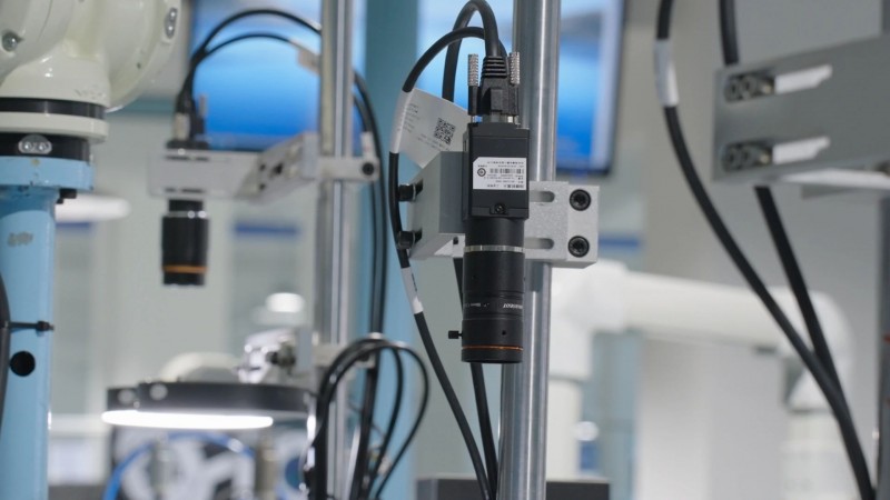 高沖車間共18條產線,每個機臺配備3套3D視覺引導系統,一套用于沖壓成型后的定子、轉子的抓取引導,另兩套分別引導機械臂將定子、轉子碼放至大尺寸料筐內。