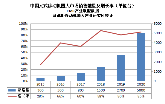 2020年度中國叉式移動(dòng)機(jī)器人銷量達(dá)5000臺