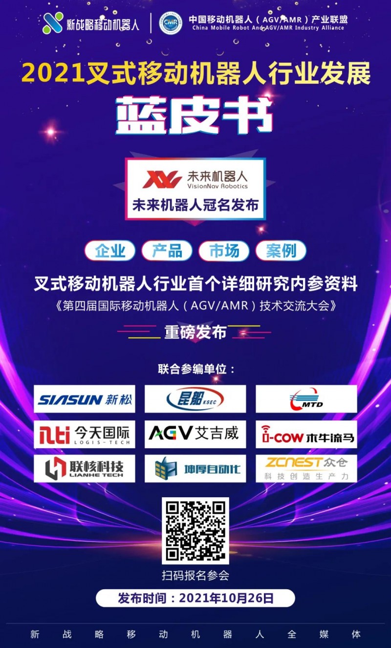 為了更透徹、更詳細(xì)的解析叉式移動(dòng)機(jī)器人市場,中國移動(dòng)機(jī)器人(AGV/AMR)產(chǎn)業(yè)聯(lián)盟與新戰(zhàn)略移動(dòng)機(jī)器人產(chǎn)業(yè)研究所將聯(lián)合出版《2021叉式移動(dòng)機(jī)器人行業(yè)發(fā)展藍(lán)皮書》,以行業(yè)首本藍(lán)皮書內(nèi)參資料,解讀最受關(guān)注的叉式移動(dòng)機(jī)器人新市場。該藍(lán)皮書主要針對生產(chǎn)物料、線邊物流、智能倉儲、第三方供應(yīng)鏈物料及園區(qū)內(nèi)物流等應(yīng)用領(lǐng)域,面向全行業(yè)發(fā)行。同時(shí)將在2021年10月26日于上海主辦的《第四屆中國國際移動(dòng)機(jī)器人(AGV/AMR)行業(yè)交流大會》上重磅發(fā)布。