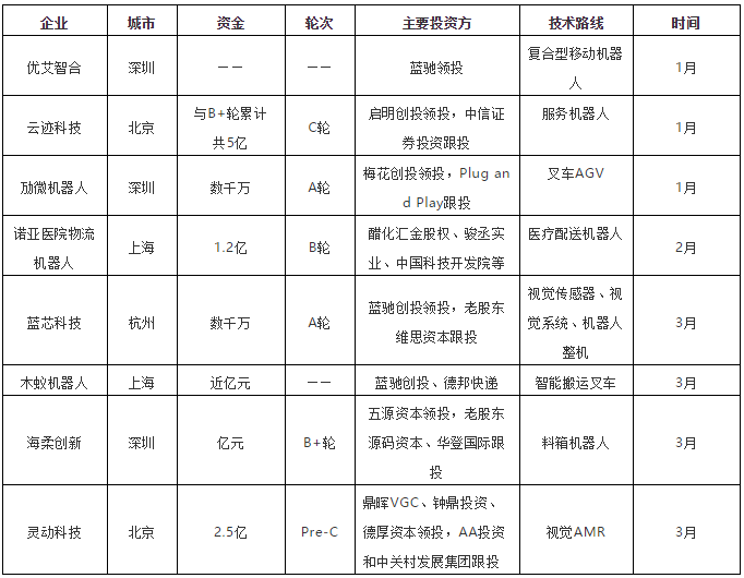 表:2021年一季度移動機(jī)器人行業(yè)融資情況