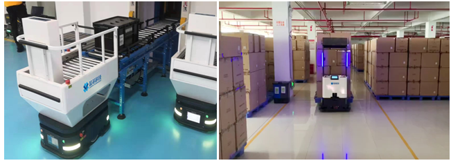此外,該企業(yè)對機器人的安全級別要求較高,單純采用激光避障存在較大盲區(qū),而3D視覺避障可彌補激光避障缺陷。項目上線后,該廠區(qū)實現(xiàn)了原料倉——生產(chǎn)區(qū)——成品庫的全自動化物流。