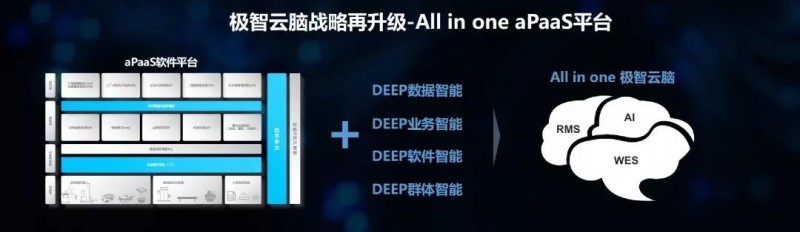 l Deep軟件智能:極智嘉aPaaS 軟件平臺(application platform as a serice)再度升級, 滿足“多元、異構、大規(guī)模”的機器人群體場景,而且繼續(xù)保持低/零代碼、all in one的特點,實現(xiàn)快速開發(fā)和迭代,敏捷應對變化。