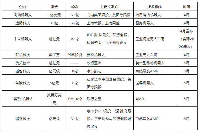 除工業(yè)應(yīng)用移動機(jī)器人外,二季度獲得融資的還有聚焦于清潔機(jī)器人應(yīng)用的高仙、云端服務(wù)機(jī)器人企業(yè)達(dá)闥科技以及送餐機(jī)器人企業(yè)普渡科技,疫情原因,商用移動機(jī)器人落地速度加快,經(jīng)過前期的落地應(yīng)用,部分技術(shù)成熟的企業(yè)脫穎而出,也得到了資本方的認(rèn)可。