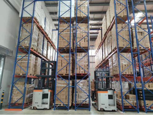 優(yōu)異的性能使得VDA116三向叉車自推出以來(lái)就受到了眾多用戶的青睞。某食品配送公司,每天有大量的物料需要進(jìn)出倉(cāng)庫(kù),之前都是采用地堆的方式存儲(chǔ)。隨著公司業(yè)務(wù)的不斷擴(kuò)大,原本的存儲(chǔ)方式已經(jīng)不能滿足他們現(xiàn)有的業(yè)務(wù)需求。只有將物料上貨架,在不改變現(xiàn)有倉(cāng)儲(chǔ)面積的情況下,可以增加庫(kù)位。可是如果采用傳統(tǒng)貨架堆垛方式,在庫(kù)位的增加上并沒(méi)有很大的優(yōu)勢(shì),未來(lái)業(yè)務(wù)再擴(kuò)張后,還將面臨儲(chǔ)位不足的問(wèn)題。客戶多方比較后決定采用卓一的三向堆垛車來(lái)改造現(xiàn)在的倉(cāng)庫(kù)。
