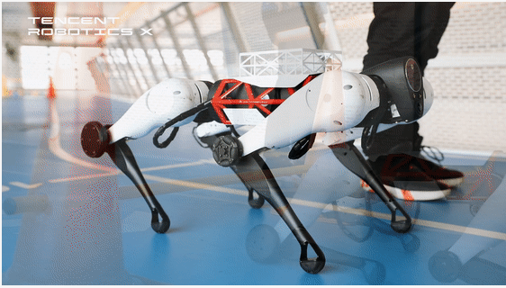 騰訊早前也正式發(fā)布首個(gè)軟硬件全自研的多模態(tài)四足機(jī)器人——機(jī)器狗Max。據(jù)介紹,該款機(jī)器人采用了騰訊Robotics X實(shí)驗(yàn)室原創(chuàng)自研的足輪融合方案,有腿又有輪。在不同的環(huán)境,可以切換不同的形態(tài)模式。特殊的輪式結(jié)構(gòu),將機(jī)器狗輪式運(yùn)動(dòng)的速度提升數(shù)倍,最高可達(dá)25km/h。