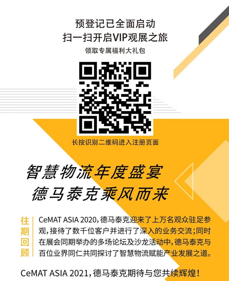 預約成功后,展會現場打開“德馬泰克”微信公眾號→“媒體中心”“CeMAT 預約”頁面并登陸,到W1館B4德馬泰克展位前臺出示給工作人員領取。
