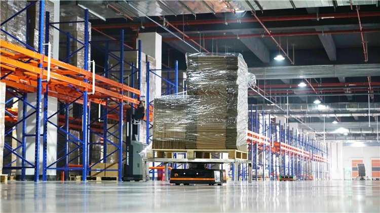 目前已部署潛伏和叉取系列機器人,共計近300臺AMR運行在智能工廠中,覆蓋3個樓層,涉及原材料倉儲、車間產線配送、成品倉儲。