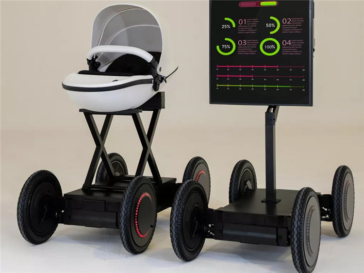 現代公司公布了其新產品:一個四輪機器人,該模型被稱為MobED,并顯示支持一個嬰兒座椅和一個垂直顯示器。MobED采用簡單的長方形平臺設計,附以四個可作多角度轉向的車輪,而每個車輪都配上獨立的避震懸掛系統,配合 12 吋輪胎,可應付不同路面狀況。每個車輪又配有 3 個獨立摩打,除了提供動力,也控制其轉向,以及控制整部小車的行走姿勢。MobED 車身長 67cm、闊 60cm、高 33cm、重 50kg,其最高速度達 30km/h,當充滿電時可連續行駛 4 小時。