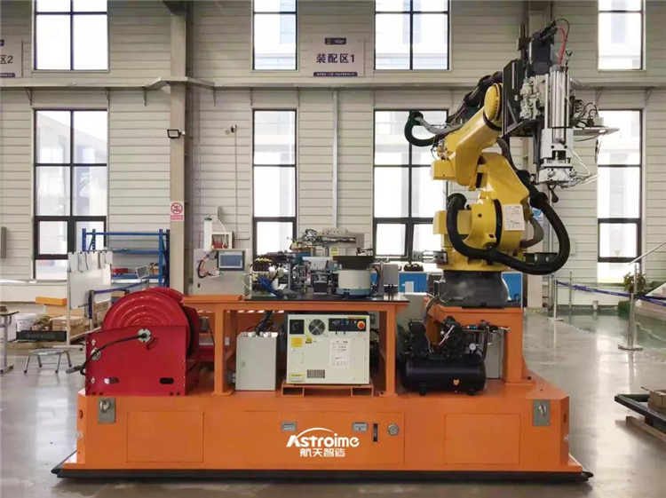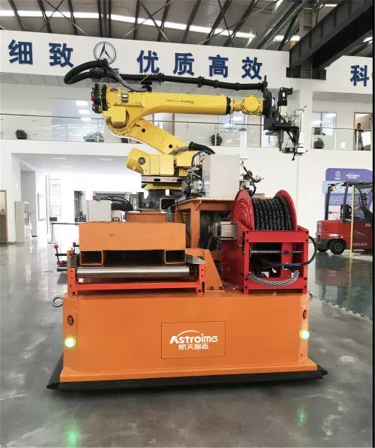 航天智造打造復(fù)合型重載AGV適用于風(fēng)電行業(yè)葉片根部雙頭螺栓的安裝與檢測(cè),實(shí)現(xiàn)了葉片自動(dòng)識(shí)別型號(hào)、自動(dòng)夾取螺栓、自動(dòng)進(jìn)行O型橡膠密封圈安裝和涂抹螺紋膠、擰緊作業(yè)、設(shè)備扭矩?cái)?shù)據(jù)互通等智能化。