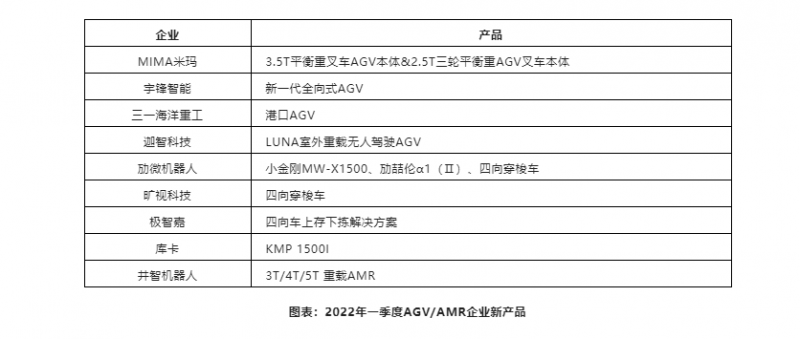 根據新戰略移動機器人產業研究所統計,2022年一季度企業發布面向工業領域應用的移動機器人近10款,包括AMR、叉車AGV、港口AGV等。其中大部分都是在已有產品上的迭代升級。